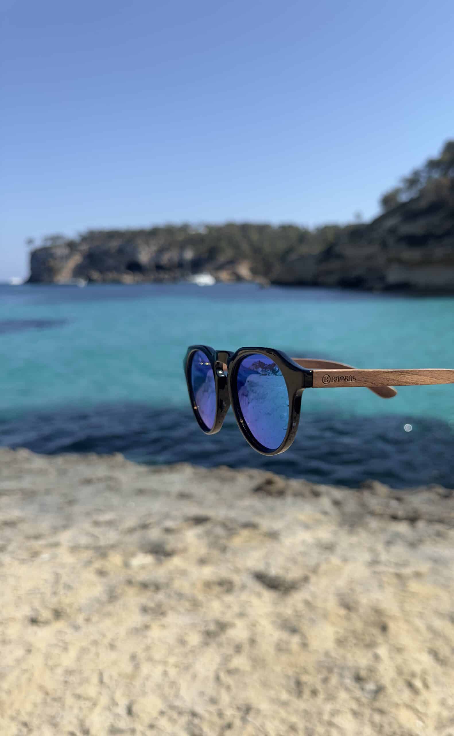 Las Eclipse capturan la esencia de los fenómenos celestiales. Su montura negra brillante y sus patillas de madera nogal evoca la sombra pasajera de un eclipse ,mientras que sus lentes azuladas reflejan la magia de la luz filtrándose a través de la atmósfera. Un diseño redondeado que aporta un aire sofisticado y dinámico para quienes buscan marcar la diferencia.